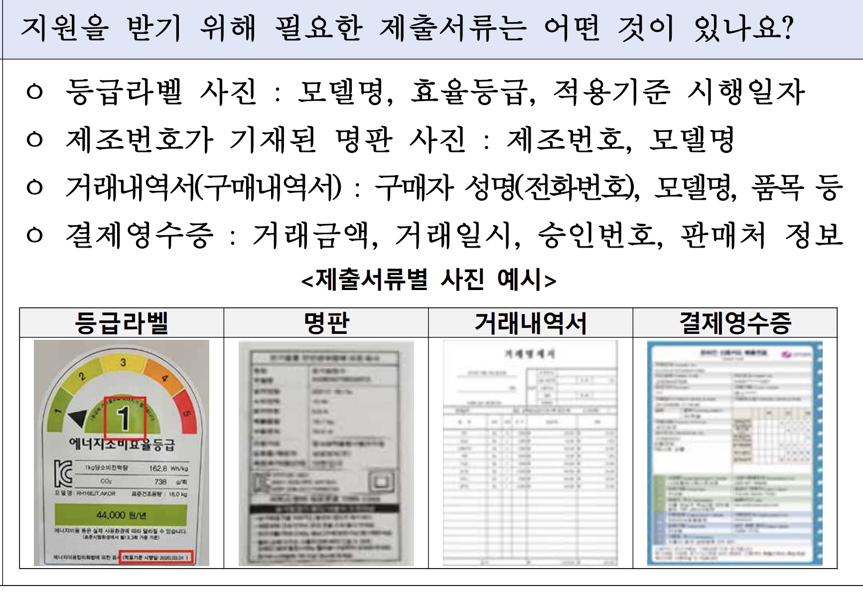 - 제품 조건: 한국에너지공단이 지정한 환급 대상 모델로 사전 등록된 1등급 제품