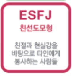 | ESFJ | 돌봄 제공자 | 타인의 욕구에 민감하고 조화 추구 |